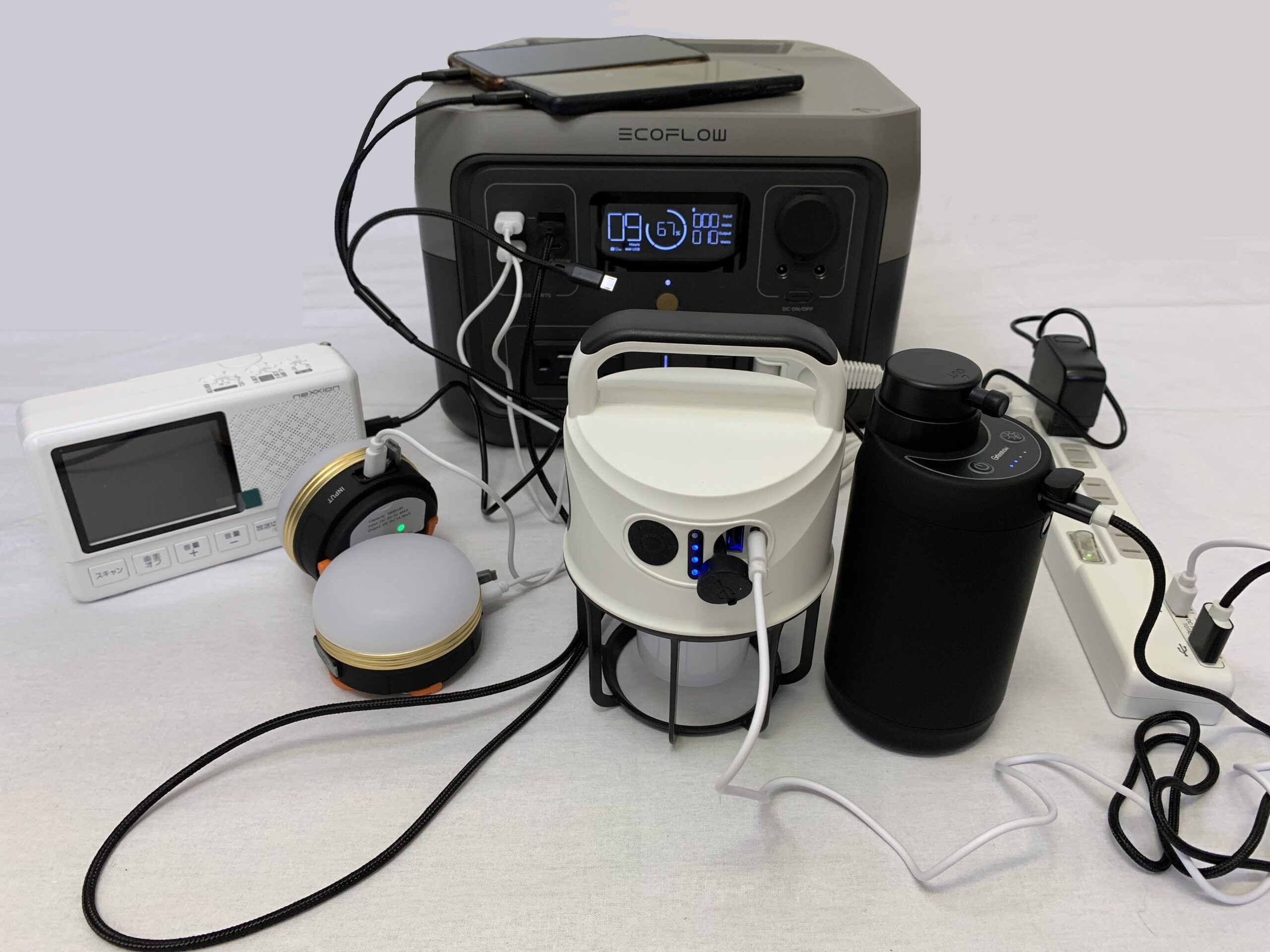 ポータブルバッテリーからセット商品などを充電をしている様子